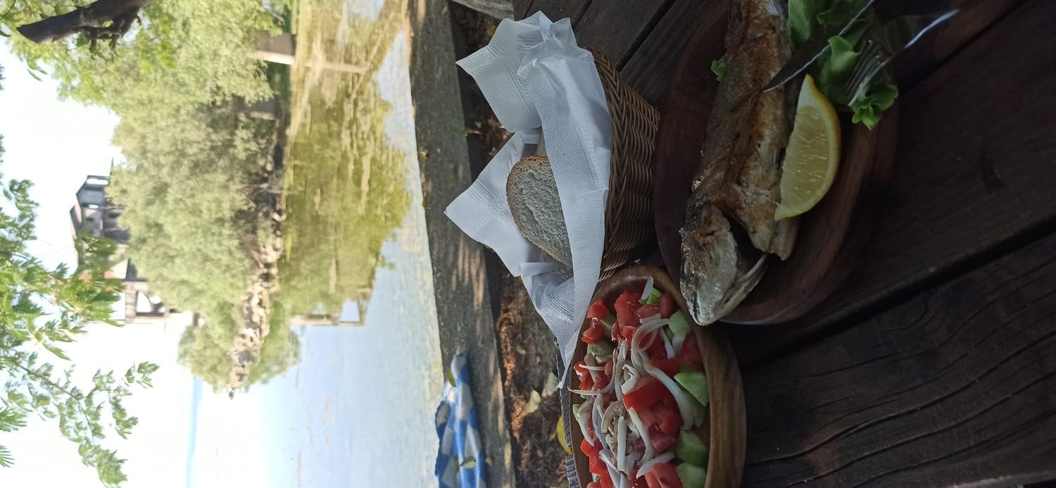 After some rest, I biked up to Drini Times just outside the center of Shiroka. Drini Times is a Water Sports & Birdwatching Center. They offer kayak rentals, stand-up paddleboarding, and self-guided kayaktours. The center is located near a small beach area. They have refreshing drinks, a small changing room and toilets.